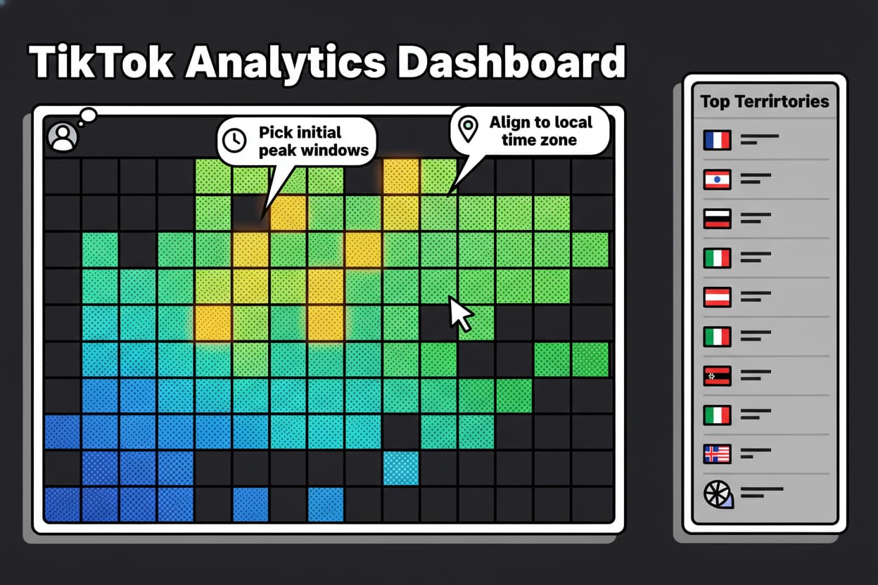 A: When Top Territories shift, run a 30-day dual-window plan. Keep your two best US windows and convert your rotating test slot to a region-focused test at an adjacent peak in that new region. If the new region grows fast, consider duplicating one piece of content into a second localized window rather than cannibalizing your US peaks. Decide with medians at 1 hour and 24 hours, then update your playbook.