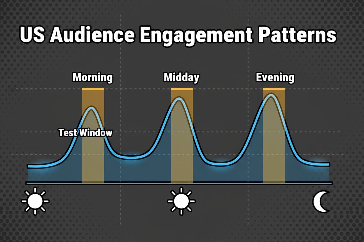 Let’s talk US time zone tactics. If you’re heavy ET/CT, choose a late morning or early evening window that overlaps both. That way you maximize concurrent activity in the first hour. If you’re split ET/PT, anchor one late morning ET window (captures ET lunch plus PT mid-morning) and one early evening PT window (still acceptable for ET). Rotate your third slot weekly between ET and PT adjacent windows to keep learning without destabilizing your schedule.