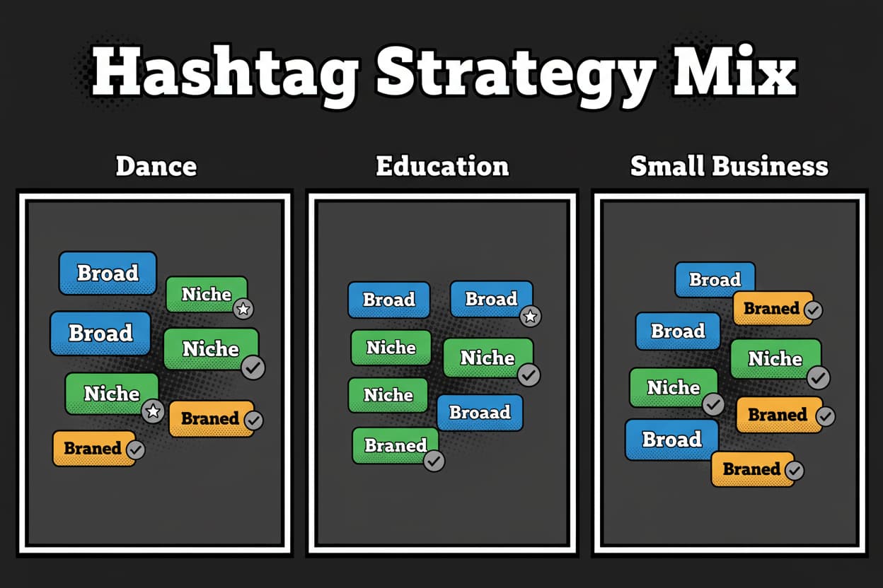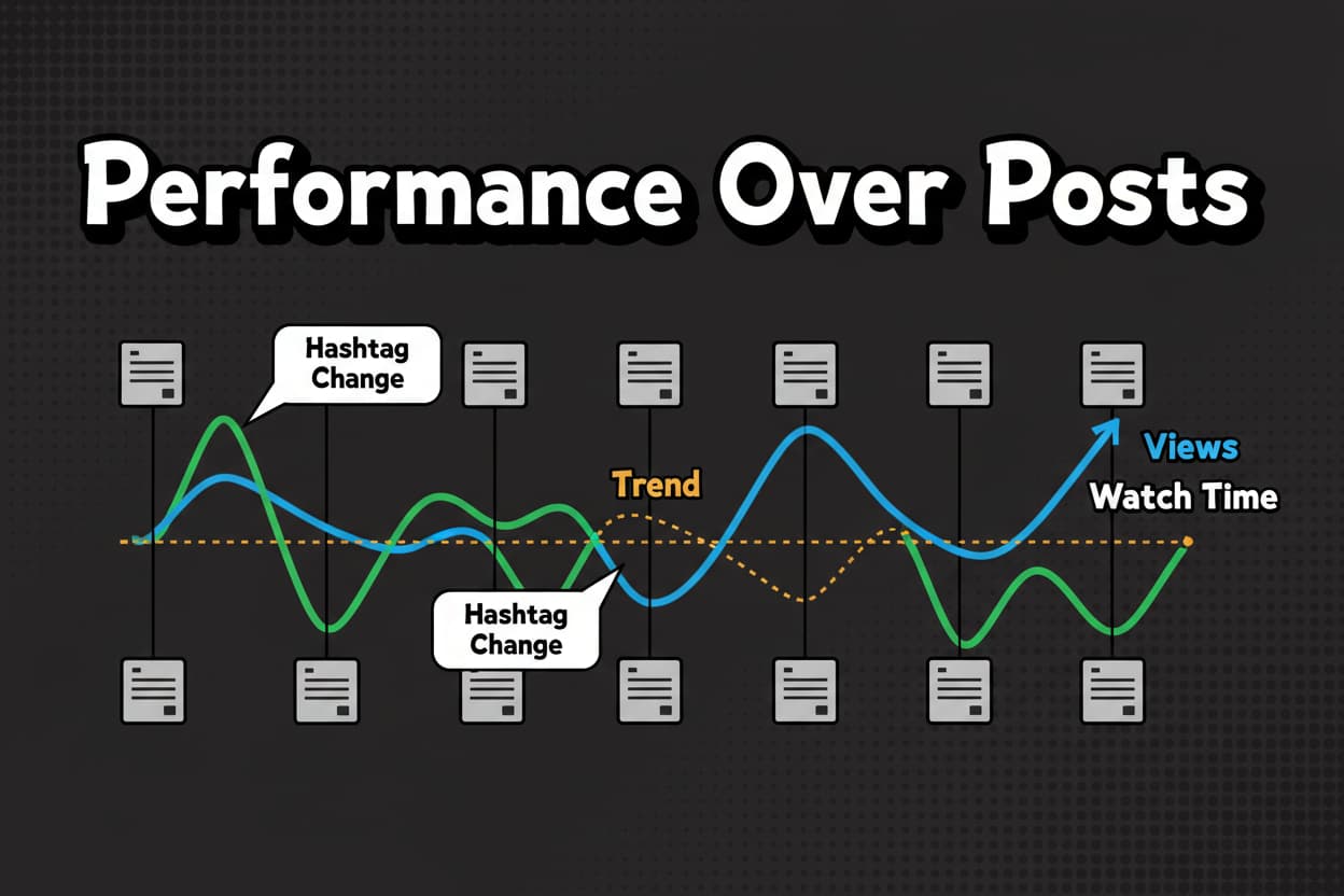 Compare mixes by theme rather than single posts. For example, run three videos with Set A and three with Set B. Keep the content format similar so the hashtag mix is the main variable.